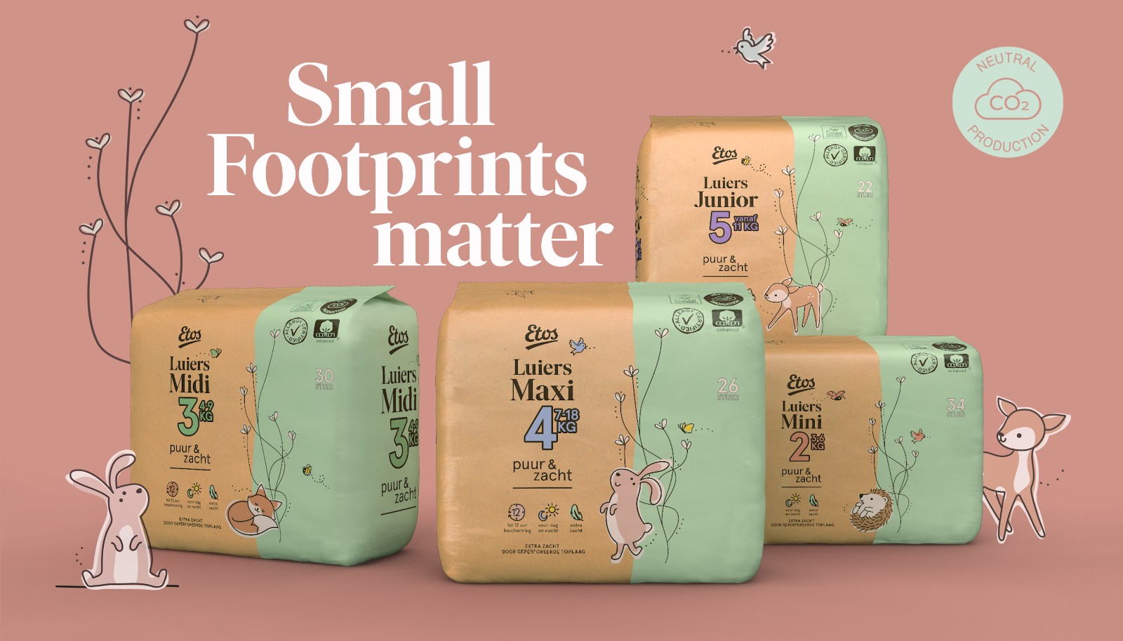 一次性尿布是臭名昭著的污染者。因此,當(dāng)領(lǐng)先的荷蘭連鎖藥店 Etos 推出新一代環(huán)保尿布時(shí),其潛在影響(聯(lián)合國(guó)可持續(xù)發(fā)展目標(biāo) 12)是巨大的。他們要求我們?cè)O(shè)計(jì)出完全可持續(xù)的包裝,以吸引他們所針對(duì)的社會(huì)和環(huán)境進(jìn)步的父母。