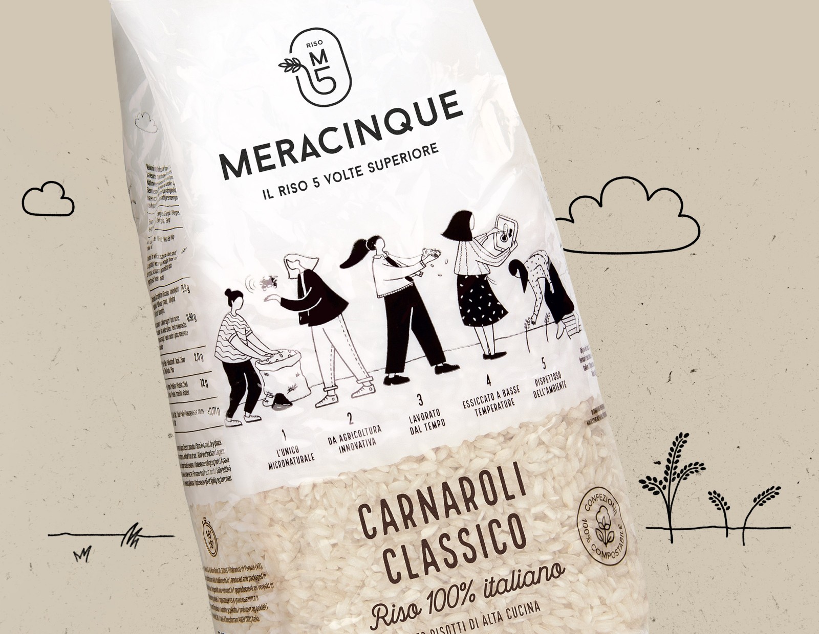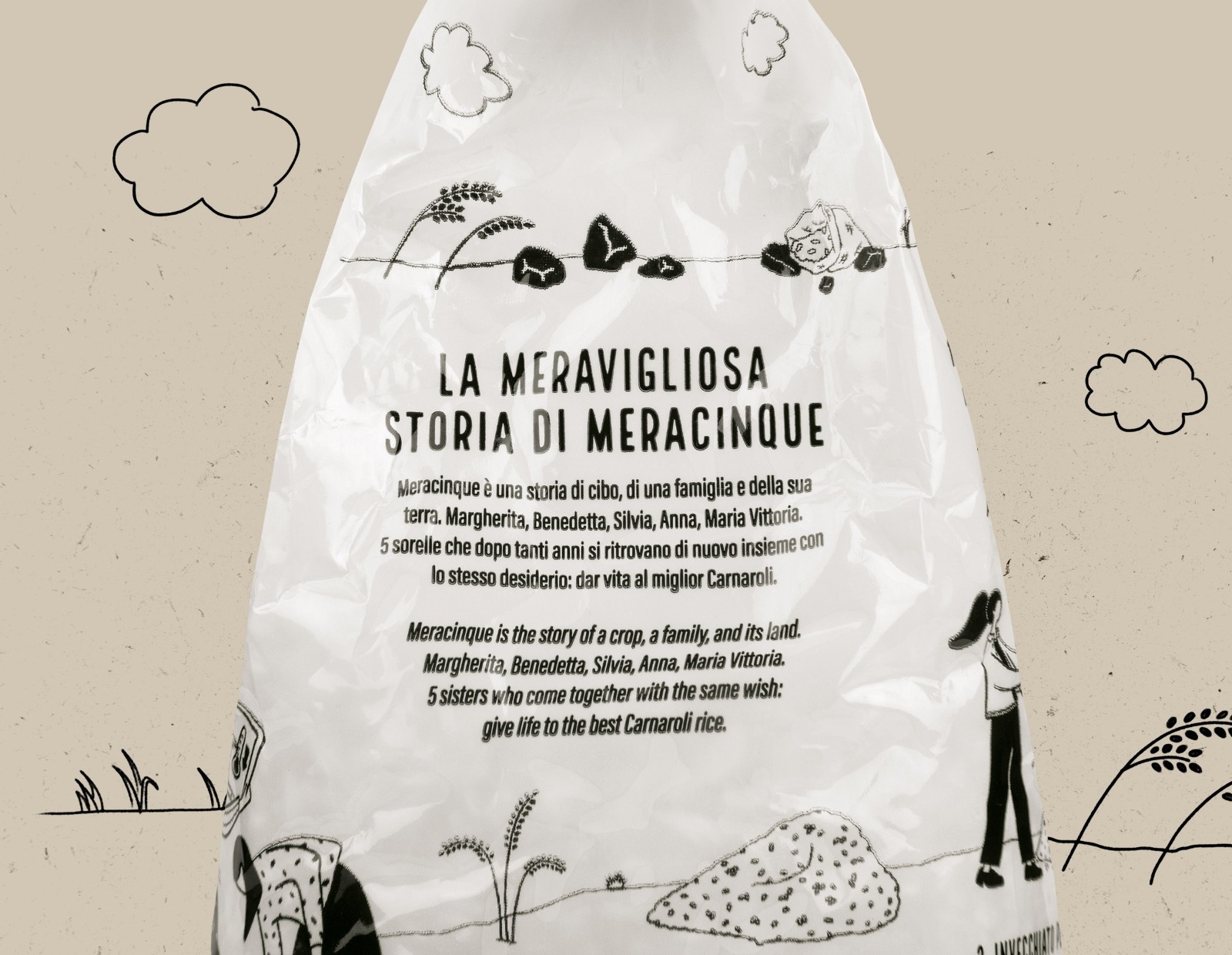 Meracinque 項目是幾年前由 Silvia、Benedetta、Vittoria、Anna 和 Margherita 發(fā)起的:五位姐妹在共同的熱情的驅使下,多年后決定改變自己的職業(yè)道路,共同努力實現(xiàn)她們的夢想最好的 Carnaroli 米飯。直到幾個月前,Meracinque 大米還只在 Horeca 市場上銷售,在意大利最著名的廚師那里獲得了巨大的成功。為什么不擴大規(guī)模,讓消費者享受這些獨特的谷物呢?因此,CBA 意大利隊首先與西爾維婭會面,然后與其他姐妹會面。